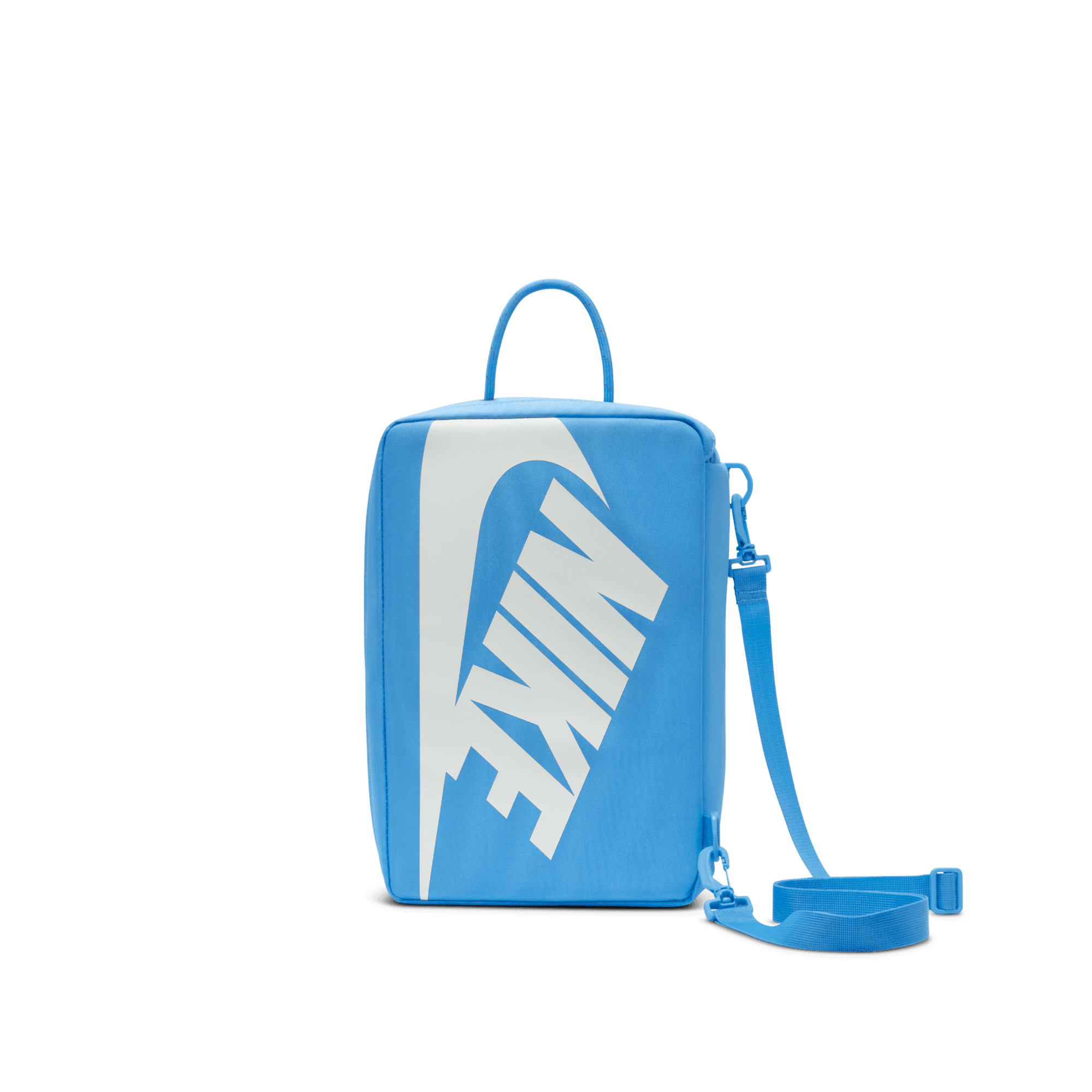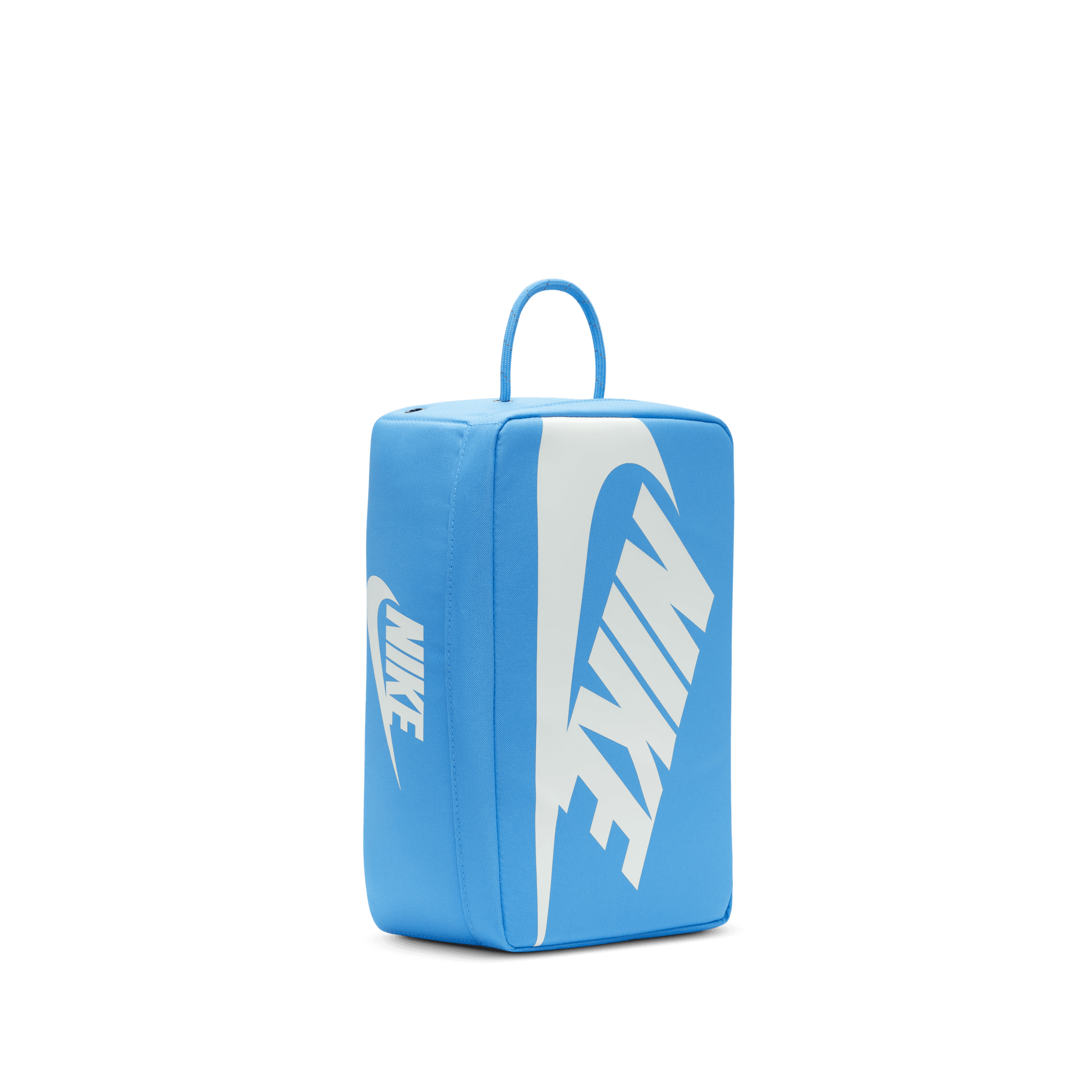 Store and carry your shoes in style with the Nike Shoe Box Bag. Made with durable materials, the main body features 2 large Nike logos, a removable crossbody strap and a true shoebox flap opening. On the inside, an internal elastic pocket and zippered mesh pocket help keep extra laces and other small items stored and organized.