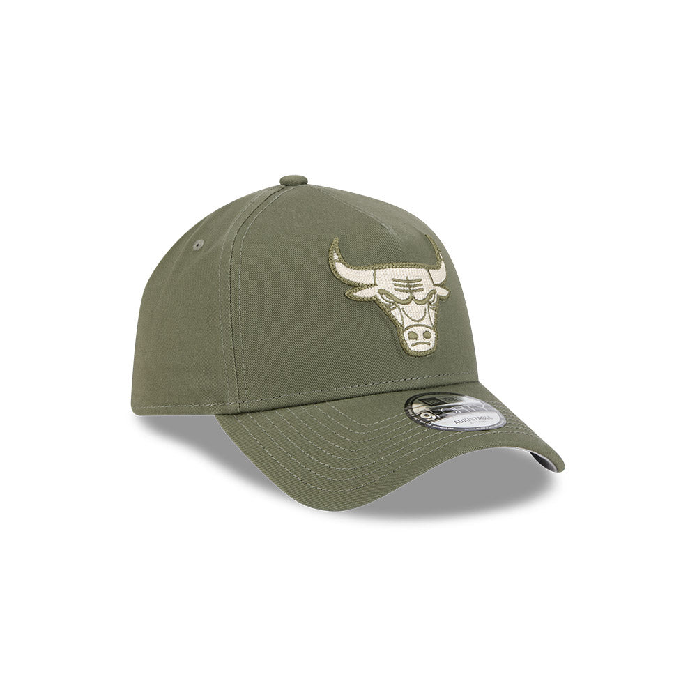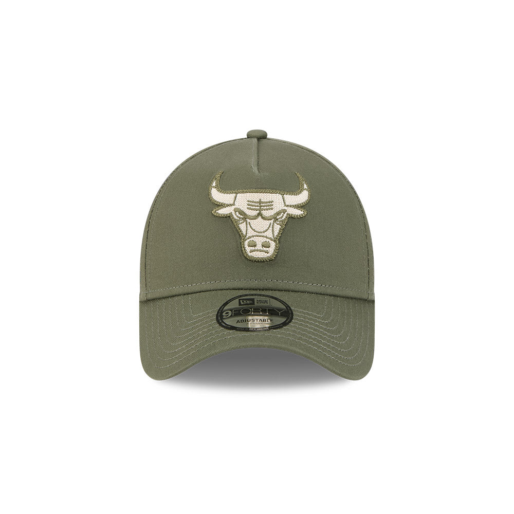 Buy the New Era 9FORTY A-Frame Chicago Bulls Earth Tone Chainstitch New Olive Snapback Cap at urbanAthletics!