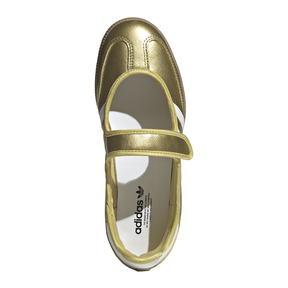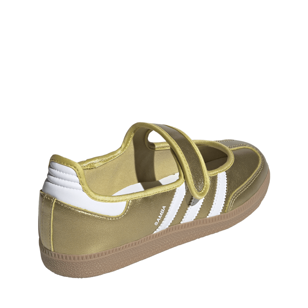 Introducing the Samba Jane Shoes. Redefine your style with a fresh twist on the classic Samba, and the first shoes with a trendy Mary Jane aesthetic to feature the iconic 3-Stripes. The open slip-on construction allows you to style them effortlessly. With a leather upper and synthetic lining, these shoes offer a comfortable fit. The serrated 3-Stripes and Samba name printed on the side add a bold statement to your look, helping you stand out wherever you go. Whether you're hitting the streets or exploring new horizons, these shoes are designed to help you move with confidence. Embrace the future of fashion with adidas Originals, where style meets innovation.